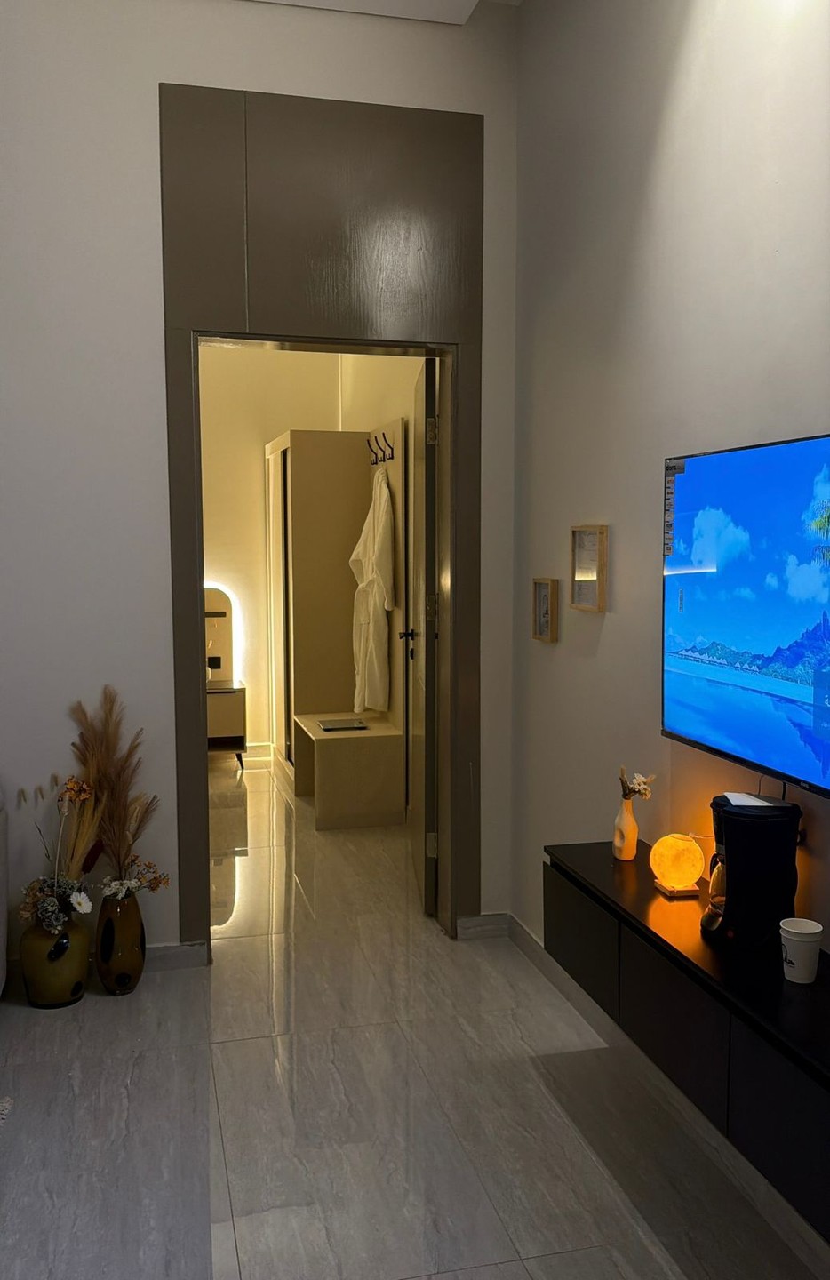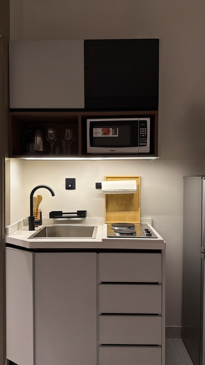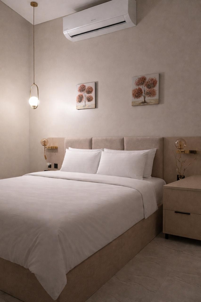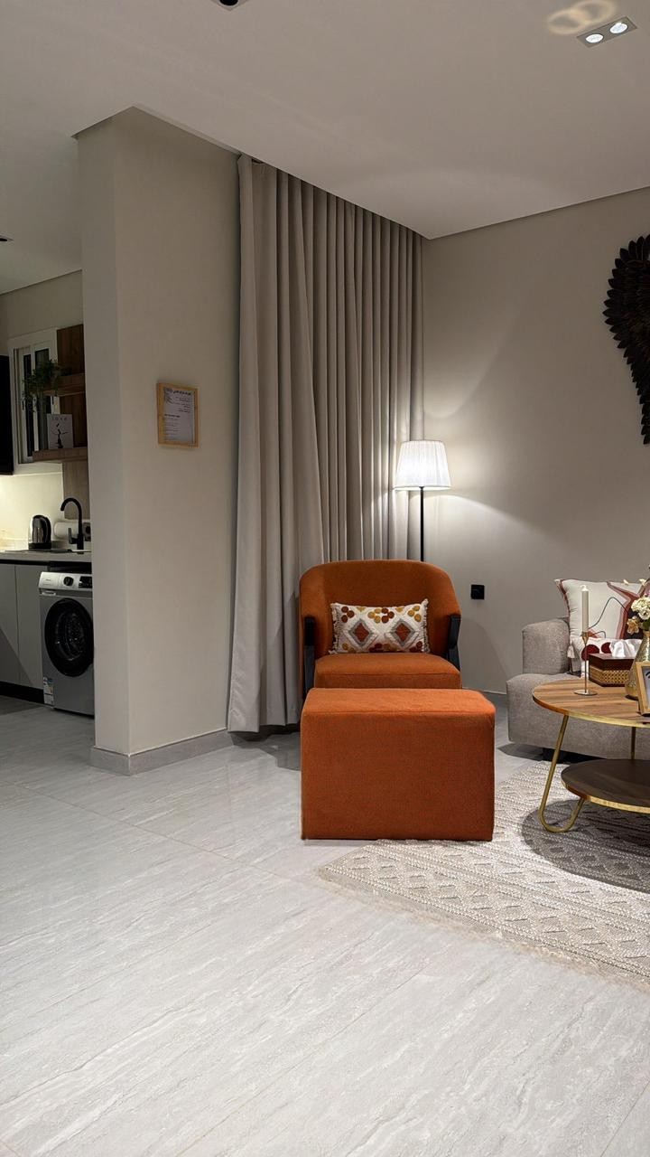 شقة أنيقة وواسعة بتصميم عصري، تضم غرفة نوم مريحة، وصالة مستقلة، ومطبخ مجهز بالكامل بأحدث الأجهزة. تتميز الشقة بإضاءة ذكية، وتكييف متكامل، وتشطيبات راقية توفر أقصى درجات الراحة. الموقع هادئ ومناسب للإقامة، مع توفر واي فاي سريع، سينما، وخدمة ذاتية على مدار 24/7، لتجربة سكن تجمع بين الخصوصية والراحة.