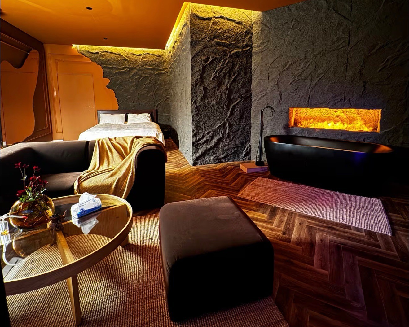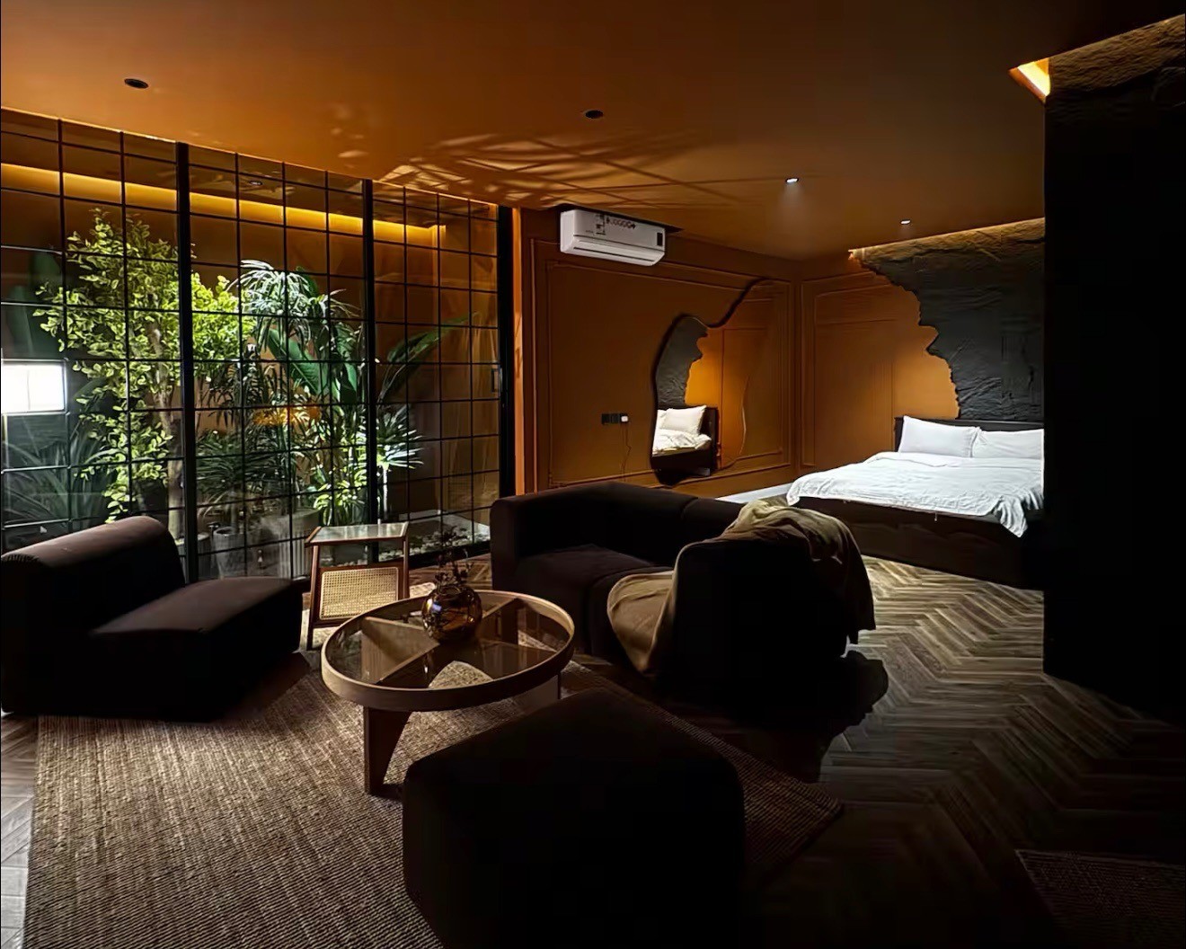 شقة أنيقة بتصميم عصري دافئ، تجمع بين الفخامة والراحة، بألوان هادئة وإضاءة مريحة، تضم جلسة مميزة، سرير مريح، وحمام فاخر مع لمسات طبيعية تمنحك تجربة إقامة هادئة ومميزة.، وخدمة ذاتية على مدار 24/7، لتجربة سكن تجمع بين الخصوصية والراحة.